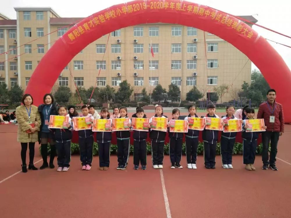 最后,我宣布舞阳县育才实验学校小学部期中考试表彰大会圆满结束!