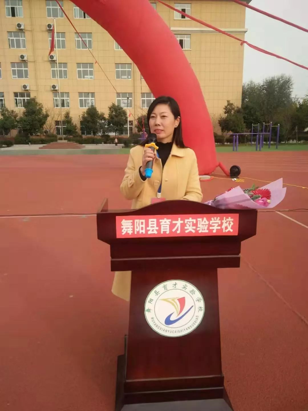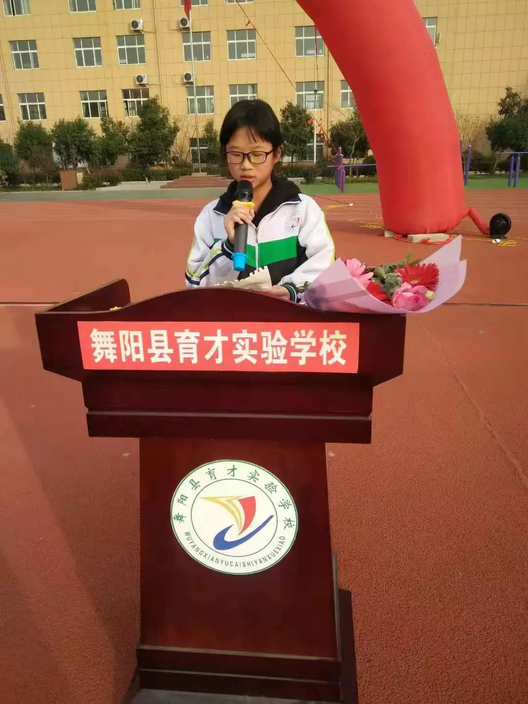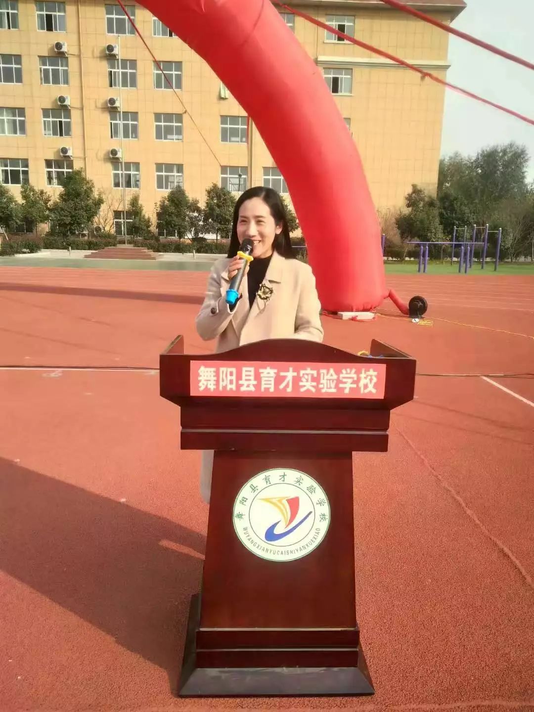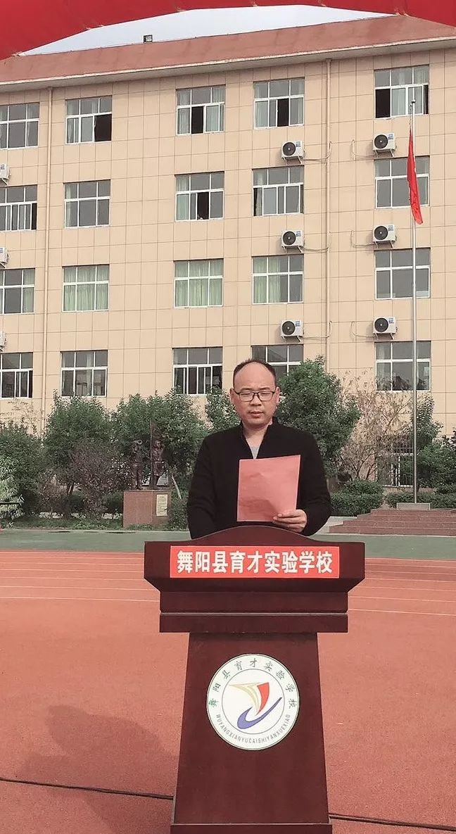 我们育才的老师可以说很苦,但是因为责任,甘将心血化时雨,润出桃花一片红。因为老师的梦想和荣誉都与你们连在了一起,你们是幸福的,老师就是快乐的;你们是进步的,老师就是欣慰的;你们是成功的,老师才是优秀的。我相信,育才师生,众志成城,和谐奋斗,一定会共同筑就美好的明天!