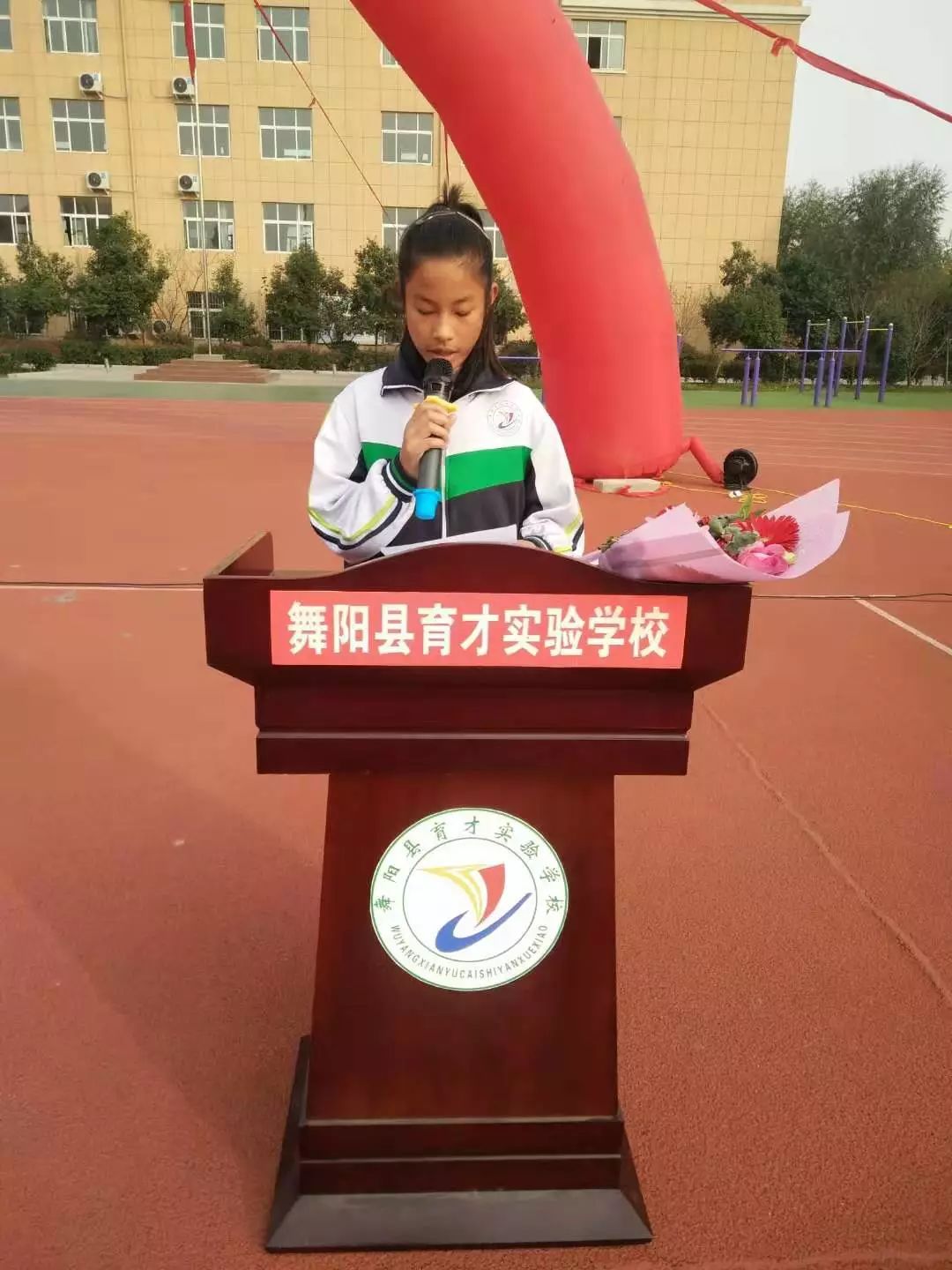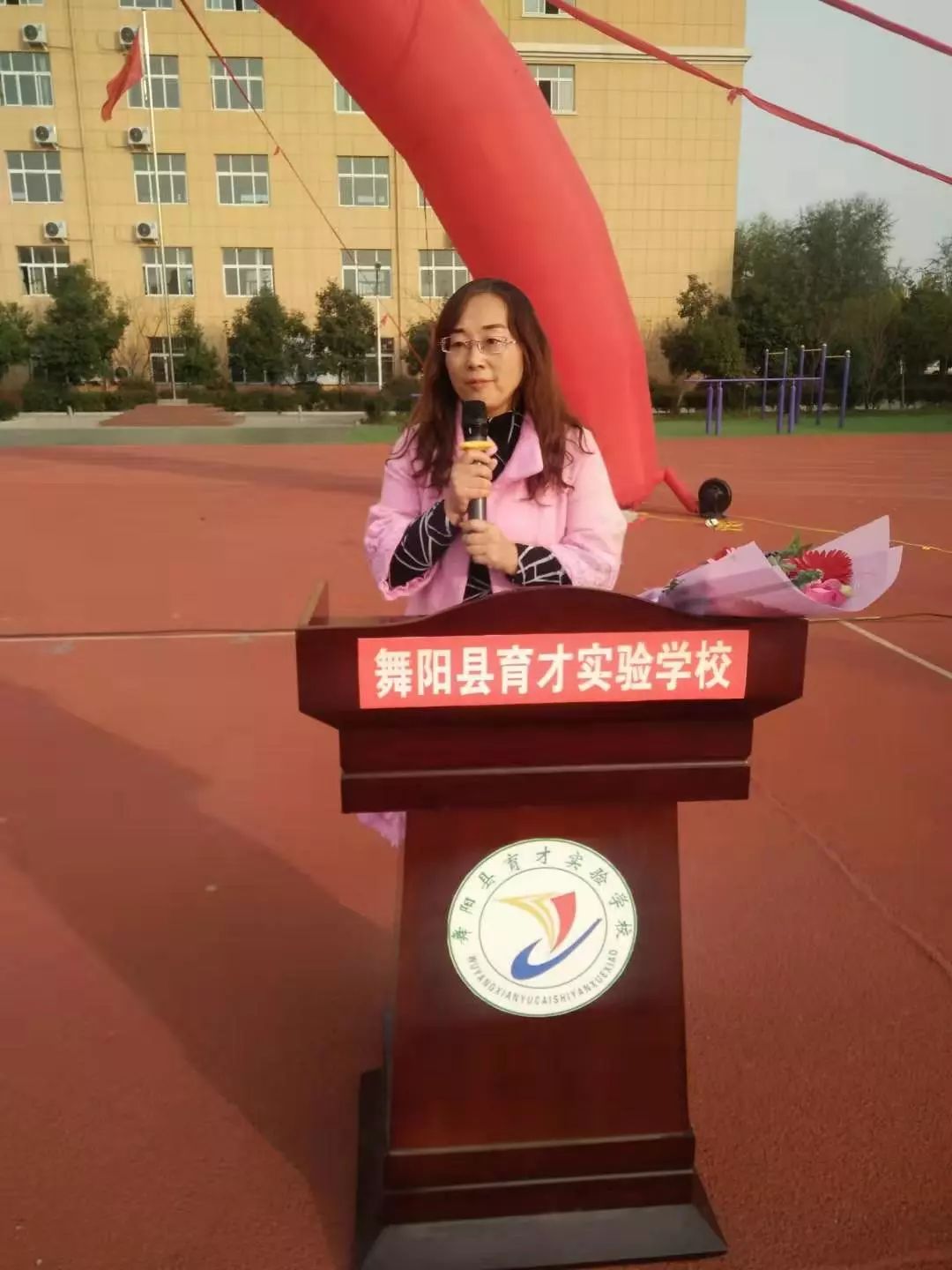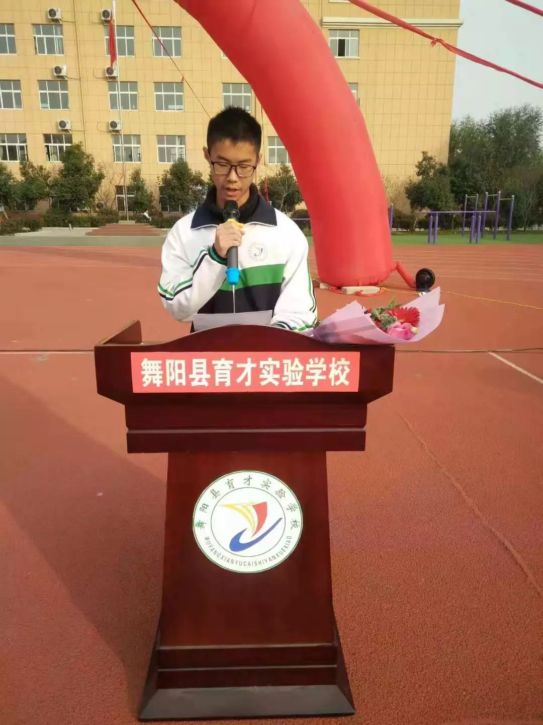 我们育才的老师可以说很苦,但是因为责任,甘将心血化时雨,润出桃花一片红。因为老师的梦想和荣誉都与你们连在了一起,你们是幸福的,老师就是快乐的;你们是进步的,老师就是欣慰的;你们是成功的,老师才是优秀的。我相信,育才师生,众志成城,和谐奋斗,一定会共同筑就美好的明天!