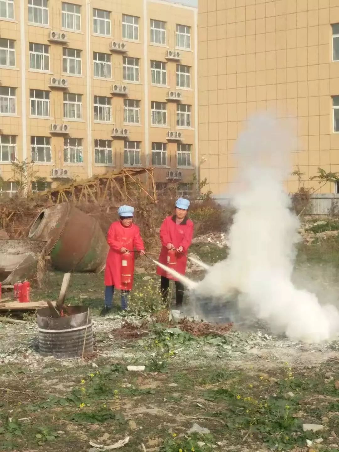 生活老师学习使用灭火器